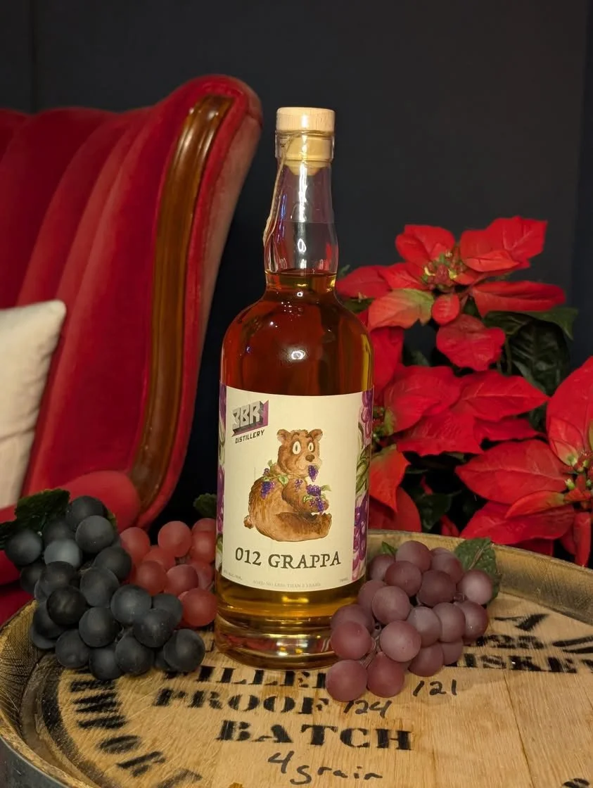 Brittney illustrated a bear and a grape background for the Grappa bottle label for 3BR distillery, located in Keyport, NJ.